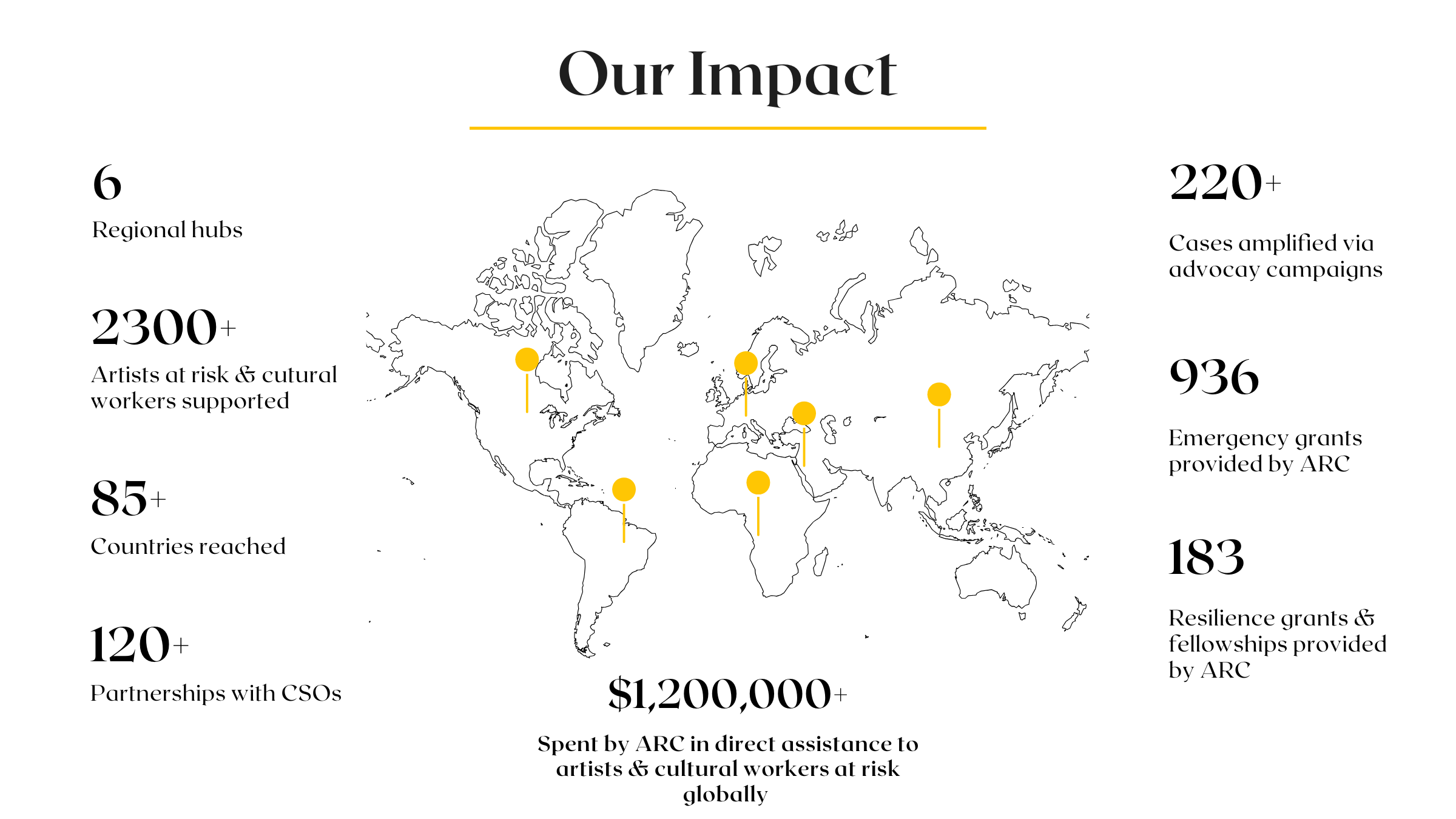 At ARC, we provide comprehensive support to at-risk artists and cultural workers through four main areas: