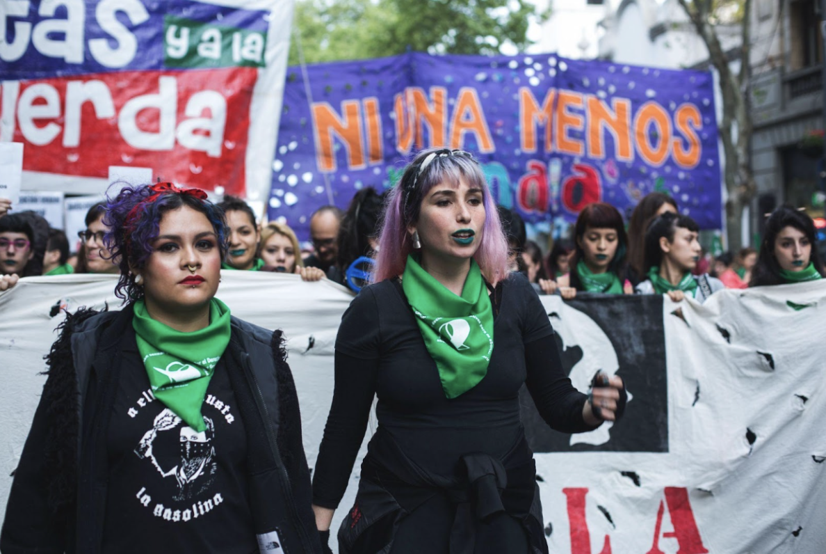Lane marches with other protesters at a rally in Buenos Aires in 2017. Photo credit: China Diaz