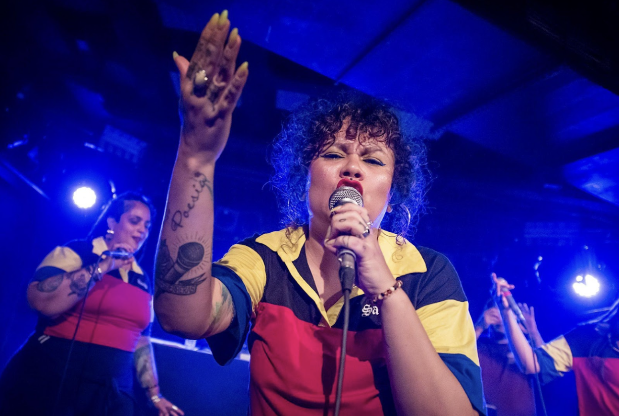 A mix of rap and hip-hop, Lane’s music touches on myriad aspects of the female experience, from femicide and domestic violence to sexuality and the policing of women’s bodies and appearances. “When I discovered how to rap, the first thing I felt the need to talk about was my body … what it means to be a woman, and what being a woman has meant to me inside social movements,” Lane says. “I had a rupture with the social movement … when I came out of the closet as bisexual. I opened my eyes and realized that this was a super, super sexist space in which the few women who are there have to act like men to be taken into account.”