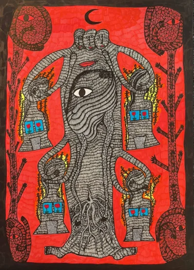 In 2020, after experiencing censorship and persecution, Samaneh and her husband were forced to go into exile, and they now live in France. Despite currently living in a country where the right to free expression is protected, she says that she has struggled to abandon a deeply ingrained mindset of the need to self-censor. “One of the reasons that led to my departure was to escape the censorship of my work,” she recalls. “But the worst part of this story is that after fear and censorship, and even after having left the country, you still do not feel safe and you still risk censorship in your drawings, in your paintings—which is very bad for the work of an artist. I left my country and even now, I do not know why, I’m scared.”