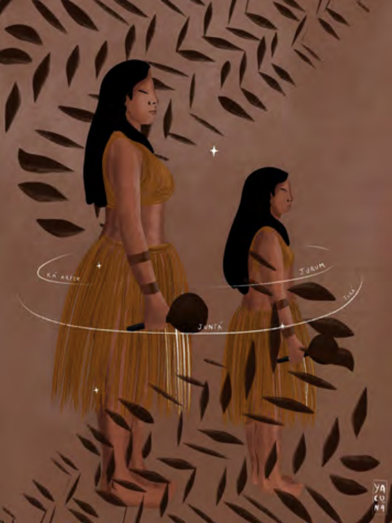 Yucanã has also focused on the intertwined ideas of memory, ancestry, and heritage. The importance of highlighting indigenous stories and traditions became painfully obvious during the COVID-19 pandemic. Many indigenous communities never had access to health services, and suffered high rates of infection and death. “The negligence toward our lives became very clear,” she says, “and the country was not concerned with whether we lived or died… I see it as a strategy of the government. Since the state will not protect us, we have to protect ourselves. Indigenous culture is essentially oral—knowledge is passed on orally. Every elderly person we lose, we lose stories, we lose too much of who we are. After COVID, I wanted to say: indigenous lives matter. They matter like any other life.”