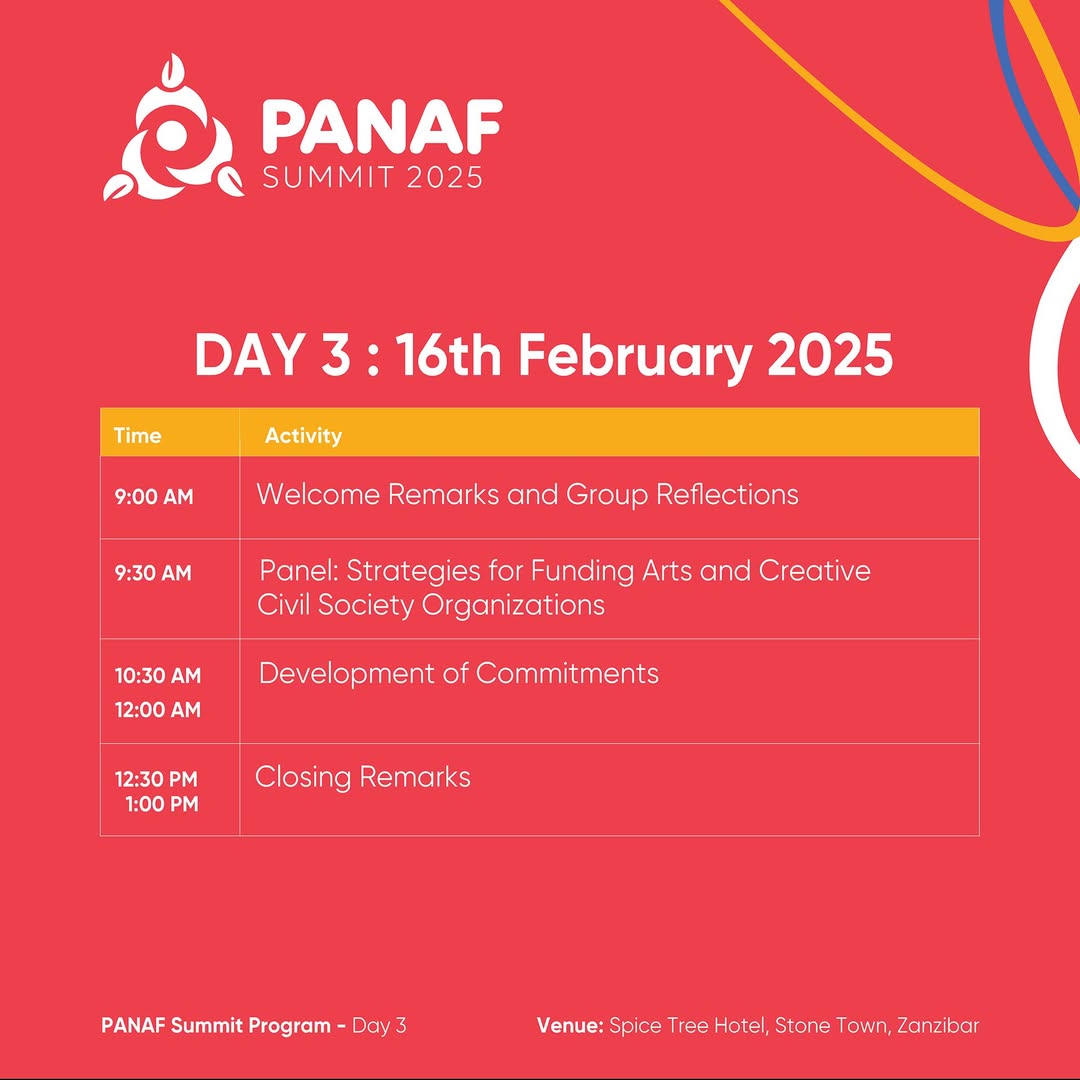 In 2025, Selam and ARC worked together to organize and host the second PANAF Summit in Zanzibar, Tanzania from February 14 to 16 focused on the theme, “Art, Civic Engagement, and Movement Building”.